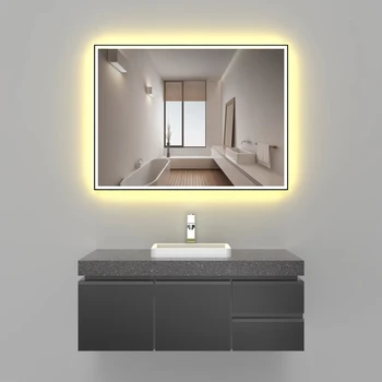 High Quality 100W 3CCT LED Aluminum Inner Borderless Touch Control Satin Nickel Finish Bathroom Mirror Modern Luxury IP44 Rating